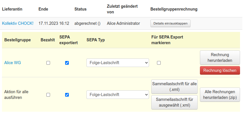 Wenn eine .xml für eine Bestellgruppe heruntergeladen wird, wird sepa exportiert automatisch markiert.